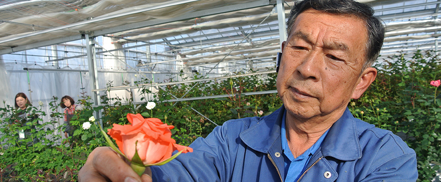 「奇跡だよ」と照れくさそうに笑うが、バラ園を訪ねてきた東京都中央卸売市場の関係者は 「2 回取るなんてまずない。作りが丁寧だし、いつ来てもハウスにいる」と、バラ作りの姿勢をたたえています。